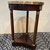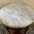 Schöner Beistelltisch im Empire-Stil, aus Mahagoni-Holz, ca. aus dem frühen 19. Jahrhundert. Der Tisch hat eine runde Marmorplatte mit einer goldenen Messingeinfassung. Der Sockel besteht aus Mahagoniholz und hat drei Säulenbeine, die sich zu einer dreieckigen Basis hin verjüngen. Der Tisch ist zudem mit vergoldeten Bronzeapplikationen verziert, darunter Rosetten unterhalb der Tischplatte und Zierelemente an den Beinen und steht mit schöner Patina da.